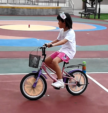 This 8 yo girl managed to cycle in 30min. While taking water break, she said to her mom, “I didn’t know I can cycle so well.” We all burst out laughters.